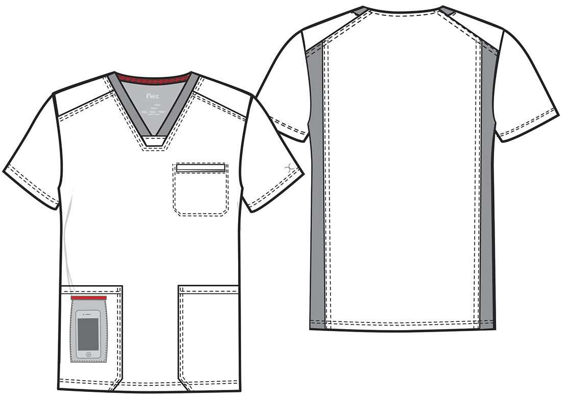 Chaqueta cuello V, un bolsillo en el pecho derecho con ribetes reflectantes, dos bolsillos inferiores (un bolsillo oculto para el celular en el lado derecho), dos paneles laterales atrás de punto acanalado.