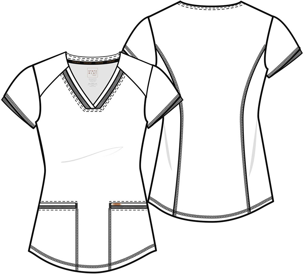 Chaqueta cuello V con corte princesa atrás, un sutil toque de power mesh en la banda del cuello y el dobladillo de la manga, dos bolsillos adelante ribeteados y la basta curveada.