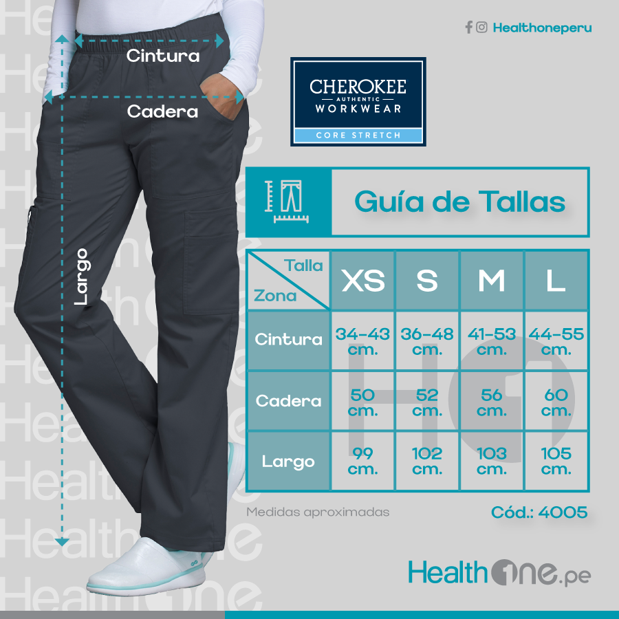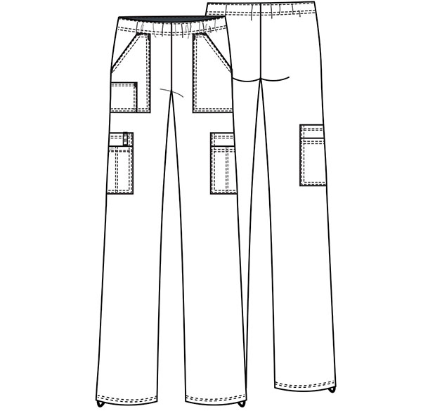 Pantalón corte recto con elástico y ajustable en la basta, dos bolsillos adelante (incluye un bolsillito en el lado derecho), dos bolsillos laterales de cargo con presilla para instrumentos.