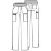 Pantalón corte recto de dama con elástico. Un pantalón de corte contemporáneo, talle natural y pierna cónica, cuenta con una cintura elástica de punto acanalado con siete bolsillos. Dos bolsillos delanteros, dos bolsillos cargo, dos bolsillos traseros y un bolsillo para tijeras. También se incluye una etiqueta tejida en el mismo tono, una cinta de sarga utilitaria y aberturas laterales.